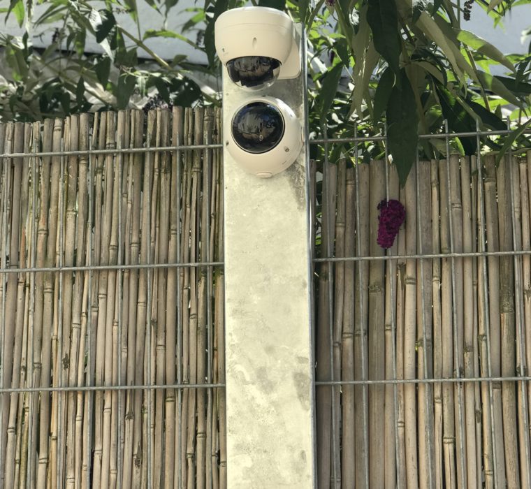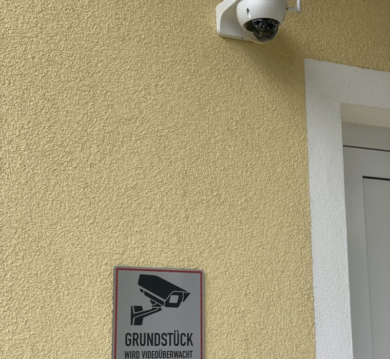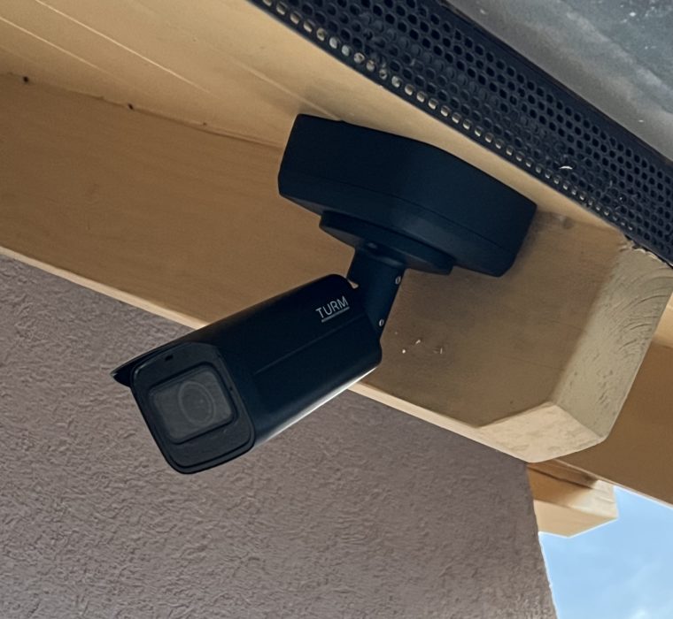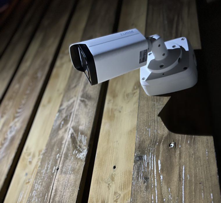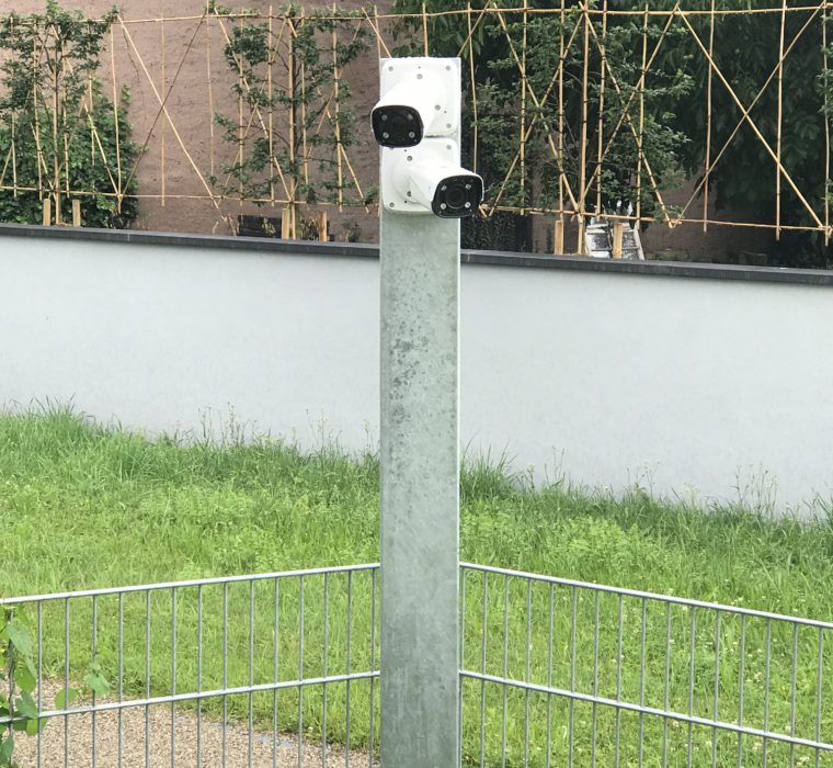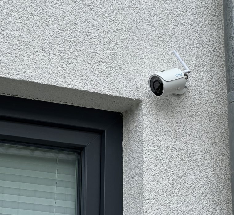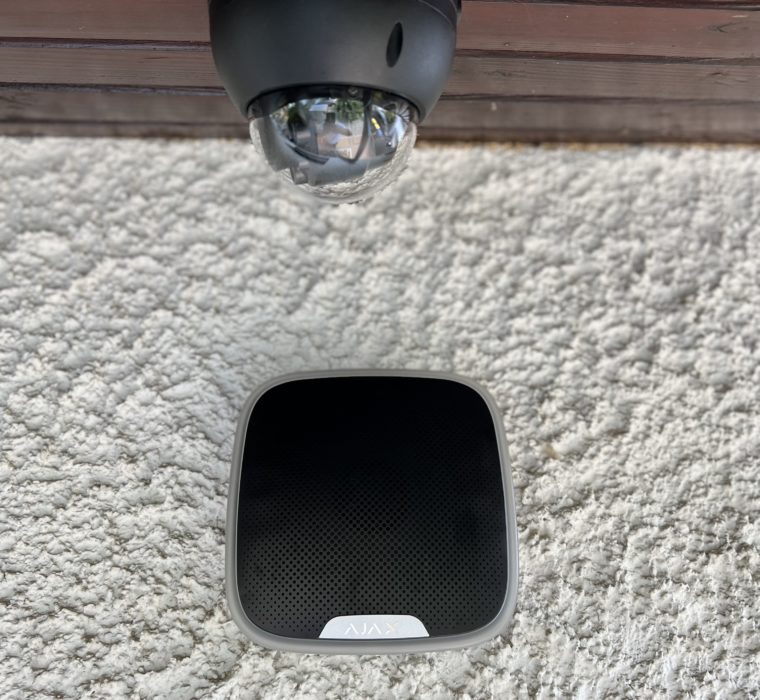 Bullet Kamera mit 8 Megapixeln, Alarm Bewegungserkennung, rot-blaue Flash-Lights, Wiedergabe von Alarm oder Ansagen über eingebaute Lautsprecher.