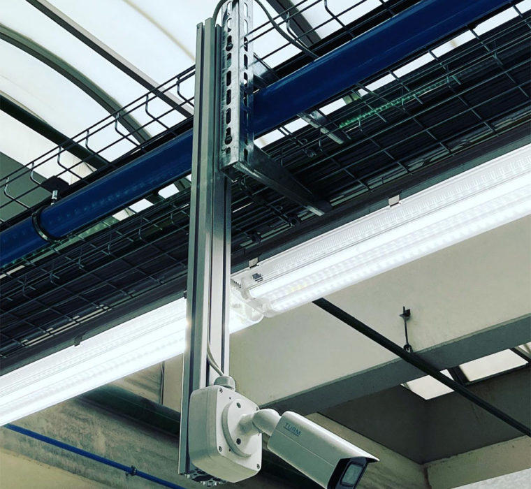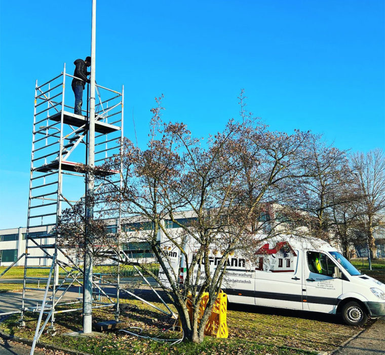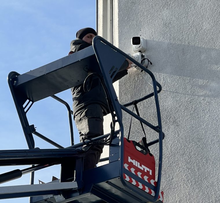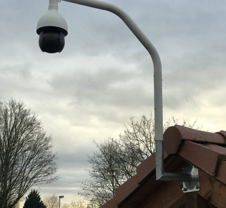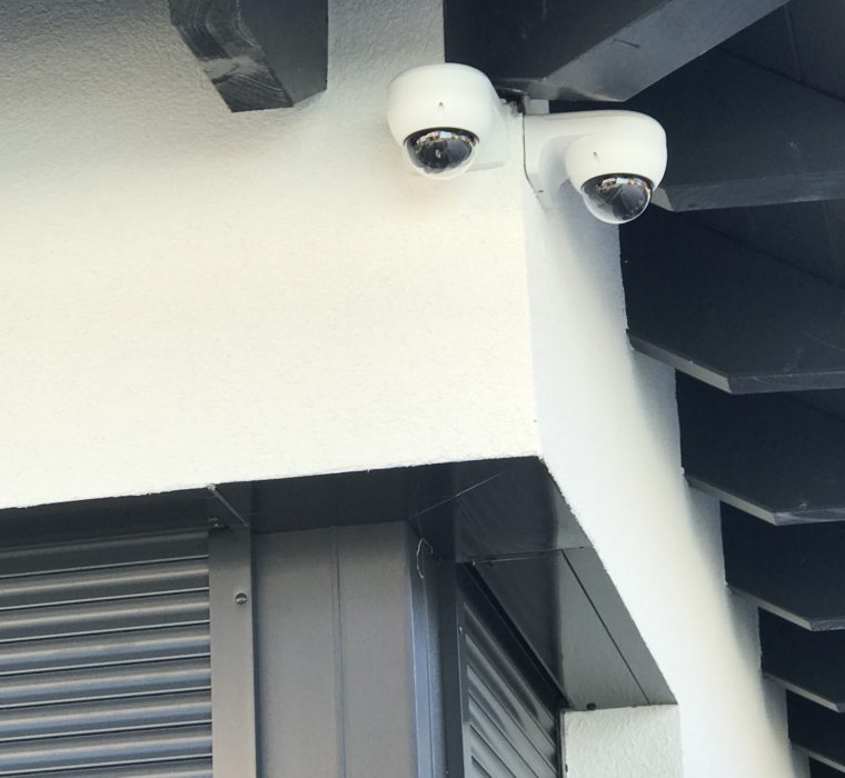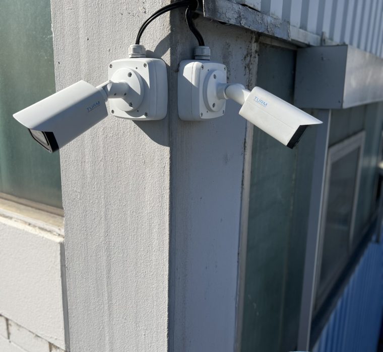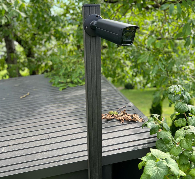 Bullet Kamera mit 8 Megapixeln, Alarm Bewegungserkennung, rot-blaue Flash-Lights, Wiedergabe von Alarm oder Ansagen über eingebaute Lautsprecher.